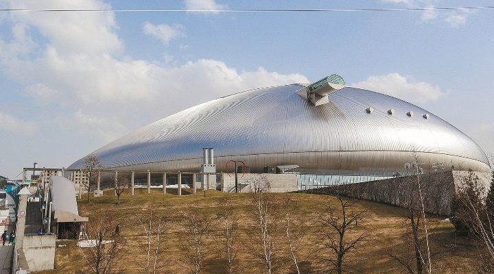 誕生は2001年。1年の約半分が雪に覆われる土地だけに、かねてよりあったドーム型野球場を熱望する声に応える形で完成。宇宙船のようにシルバーに輝く外観が特徴的。